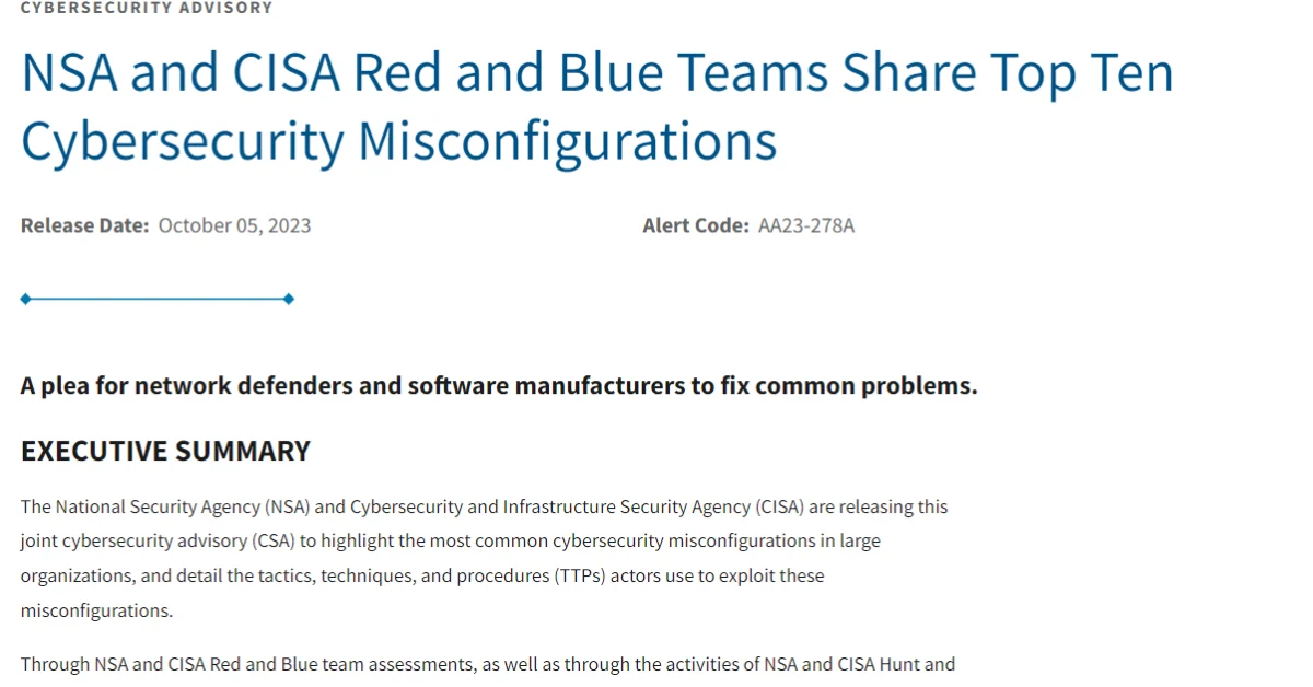 NSA and CISA Red and Blue Teams Share Top Ten Cybersecurity Misconfigurations